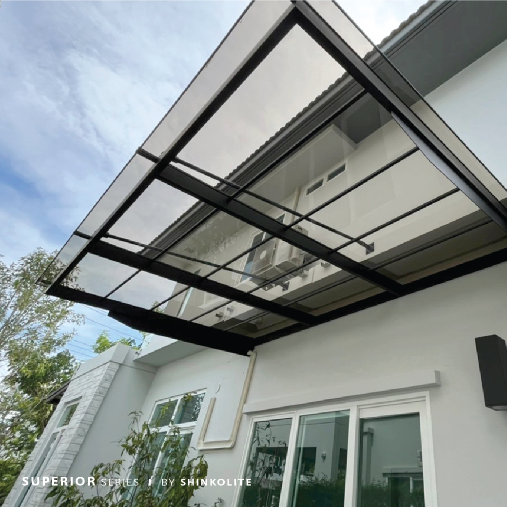 นอกจากคุณสมบัติที่ดีสำหรับผู้ใช้งานโดยตรงแล้ว ยังส่งต่อถึงรสนิยมที่ดีของเจ้าของผ่านการเลือกสรรใช้งานหลังคาเพื่อสถาปัตยกรรม เพราะสีของแผ่นหลังคาอะคริลิกโปร่งแสงของ Shinkolite มีให้เลือกหลากหลาย เพื่อจับคู่กับอาคารได้ตอบโจทย์ดะความต้องการเรื่องความสวยงามเป็นอย่างดี ซึ่งทำให้คุณภาพพื้นที่เป็นไปพร้อมกับคุณภาพความงาม และจากข้อดีของวัสดุในเรื่องน้ำหนักเบากว่ากระจกครึ่งหนึ่ง ทั้งยังสามารถดัดโค้งได้ จึงสามารถดีไซน์รูปลักษณ์ของหลังคาได้ตามข้อจำกัดทางพื้นที่และสไตล์ของบ้าน ไม่ว่าจะเป็นหลังคาไร้เสาแบบแขนดึง แขนแฟลตบาร์ แขนค้ำยัน หรือจะเป็นโครงหลังคาแบบตั้งเสา หรือติดตั้งยื่นยาวเกิน 6 เมตร ก็สามารถทำได้ (กรณีติดตั้งความยาวเกิน 6 เมตร กรุณาปรึกษาวิศวกรโยธา) จึงช่วยส่งเสริมคาแร็กเตอร์ของงานสถาปัตยกรรมให้โดดเด่น และสะท้อนความเป็นบ้านที่รักธรรมชาติเป็นอย่างดี